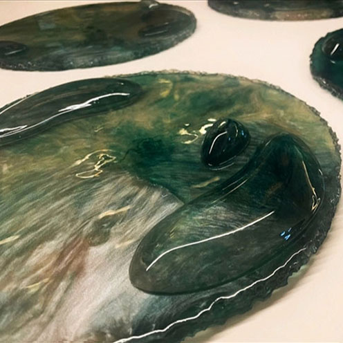 • Application of specialized resins: polyester, epoxy, polyurethane, eco-friendly or water-based acrylic, transparent resins, and synthetic crystal (CSO)